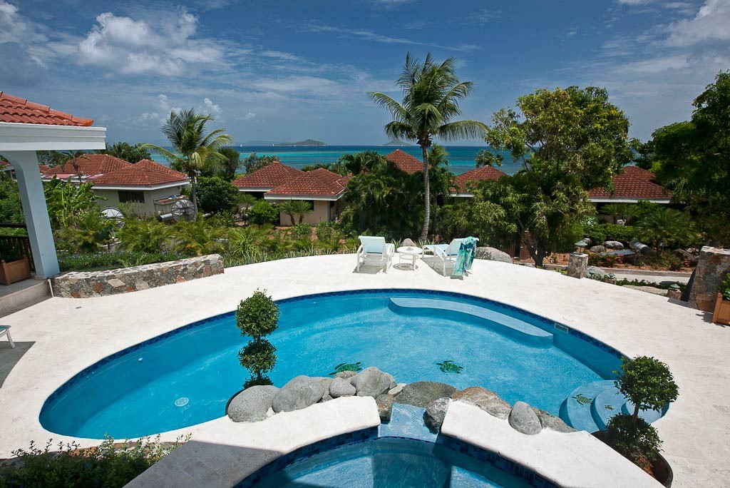 You will spend countless hours on the covered patio enjoying the Caribbean sea views, splashing in the pool and soaking in the hot tub. While relaxing by the swimming pool, you can take in the soothing sounds of the waterfall that flows down from the patio above.